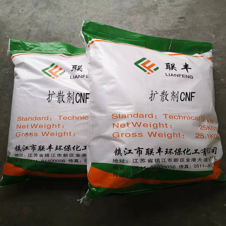 扩散剂NF,溶于水,分散性好,对粉状配合剂湿润快,所制分散体的黏度低,混合时不易发生气泡,被分散物质不易重新凝聚。常在天然胶乳中用作分散剂和湿润剂